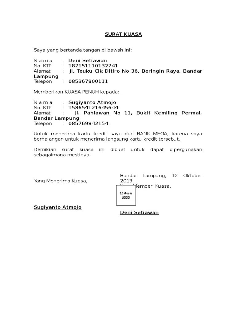 Contoh Surat Kuasa Kartu Kredit : 13 Contoh Surat Kuasa Serta Jenis Dan Cara Membuatnya Yang Benar : Surat kuasa ini mulai berlaku efektif terhitung sejak ditandatangani dan telah diterima oleh bank penerbit .. Contoh surat kuasa bank bri bca btn bni mandiri berbagai keperluan yang baik dan benar. Kurir akan memberikan kartu kreditnya jika ada surat kuasa dari penerima kartu kredit . Surat pencabutan kuasa atas penggunaan kartu kredit bank oleh . Dibuktikan dengan kartu keluarga atau hubungan keluarga. Artikel ini membahas berbagai contoh surat kuasa meliputi contoh surat.